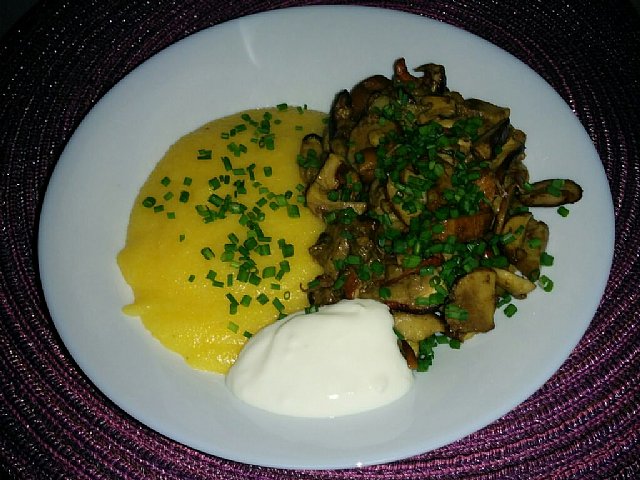 Danes pa zame praženi jurčki s polento in žlico kisle smetane ![]()