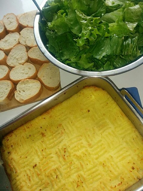 Včeraj: ostanki kosila, torej spet pastirska pita, zelena solata in popečeni kruhki. "sladica" pa radler in lava ![]()