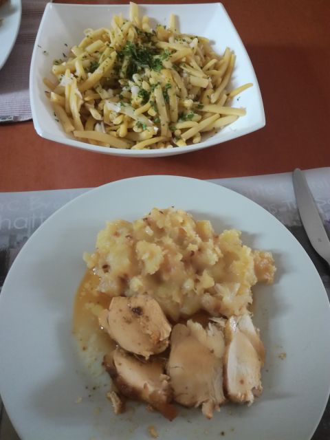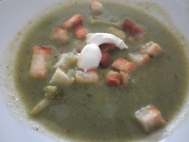 Včeraj brokolijeva juha, pražen krompir, pečen piščančji kos prsi, kotlet, solata iz stročjega fižola.