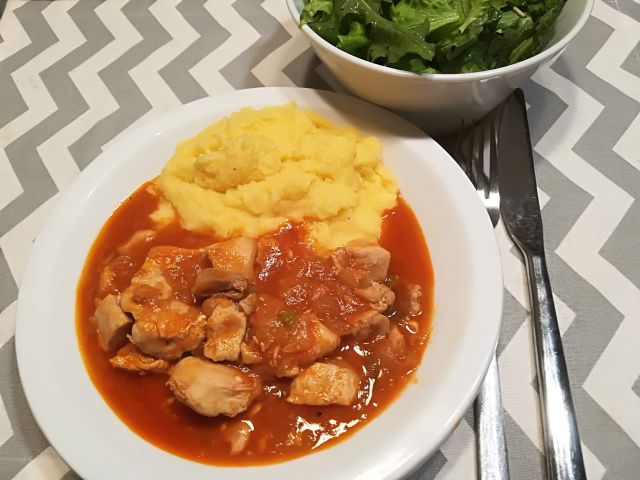 včeraj še ostanek paprikaša, zraven polenta in zelena solata z regratom