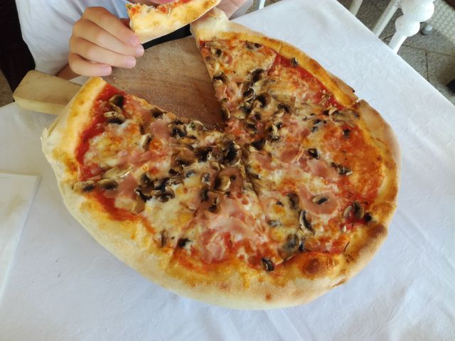 , solata iz paradižnika, stročjega fižola, kumar, jajčk in mozzarelle, sladica pa princeske