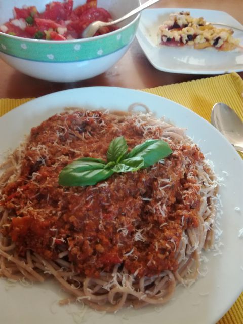 Danes pirini špageti, paradižnikova solata, nektarinina pita