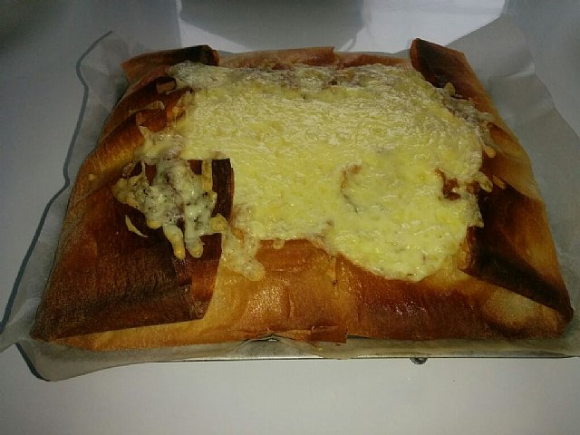 Danes pa sem spekla krompirjev zavitek s prepraženo slanino in jajčki ter sirom in paradižnikova solata.
