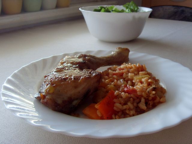 Včeraj: zajčkova obara, rižev narastek in breskov kompot.