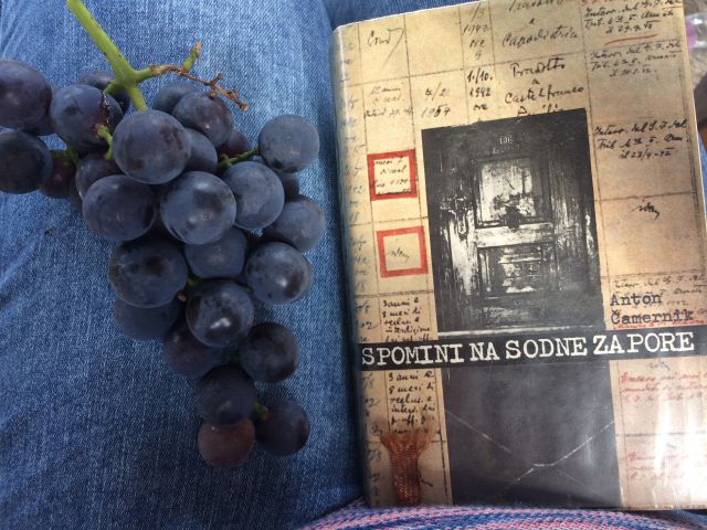 Danes sem sla domov in ker ni za kosilo nikogar doma, sem si postregla z domacimi jabolki, grozdjem in knjigo