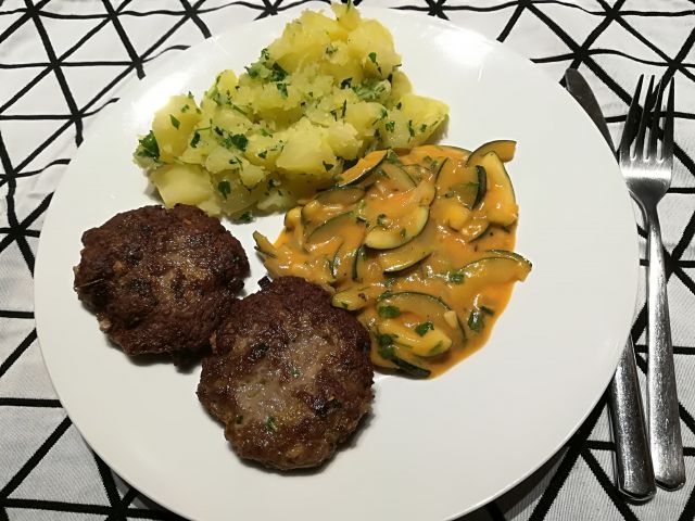 Danes mesni polpeti, bučkina omaka in kuhan krompir s peteršiljem