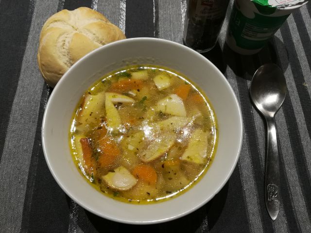 gobova juha, s korenčkom, jurčki, krompirjem,......