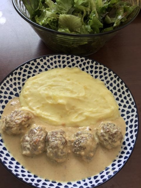 Danes za naju s sinom kokošje- goveja juha z zvezdicami in korenčkom, za moža goveja juga z rezanci, meso ( govedina, kokošje meso iz juhe) v omaki s paradižnikom, popečen krompir s čebulo, zelena solata z zeljno in paradižnikom