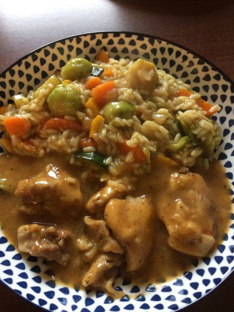Danes pa samo enoločnica z različno zelenjavo, piščančjim filejem in vodnimi žličniki. To bomo jedli tudi jutri, ker sem skuhala preveč.