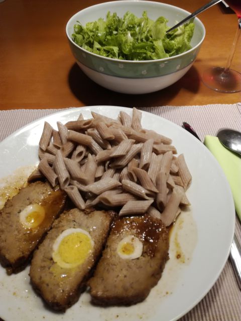 Za kosilo: Tople kumare kot juha s popečenimi kruhovimi kockami, radičeva solata s krompirjem, klobasa za kuhanje in kruh - ker me ni bilo doma. Pa včasih naredim zaškarjan štrudelj. Bom poskusila pripeti fotko ene od variat.