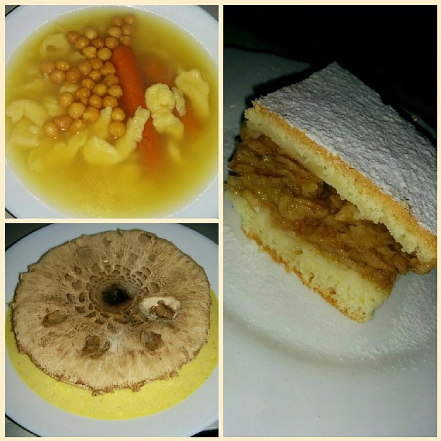 bila je moja goveja juhica, ocvrla sem si gobe dežnikarice, spekla sem (ja, spet! in še bom) jabolčno pito.