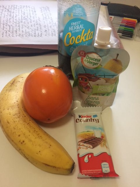 Danes 2 jabolka. Zvecer pa mi je fant za kosilo/vecerjo pripravil zemljo z ocvrtim zrezkom in kos torte.