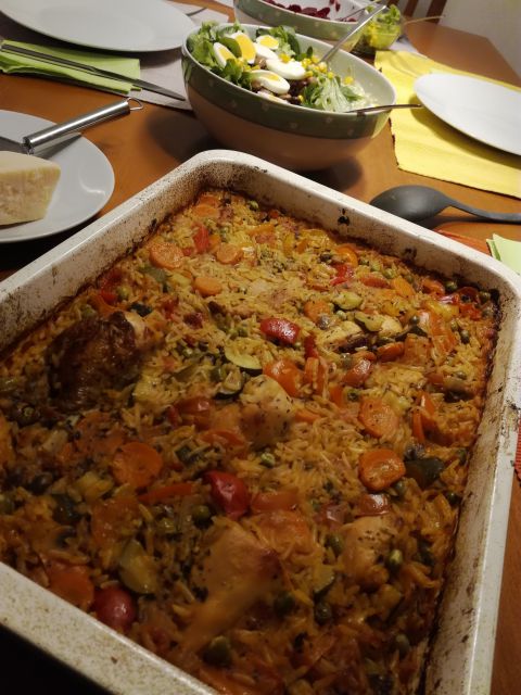 Včeraj rižota z mesom in zelenjavo iz pečice, mešana solata, rdeča pesa.