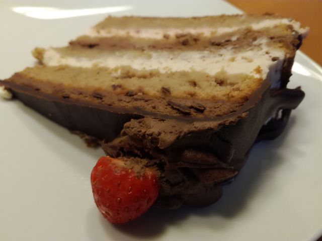 Mi smo danes praznovali sinov rojstni dan- naročili smo pizze in bila je domača jagodno- čokoladna torta.