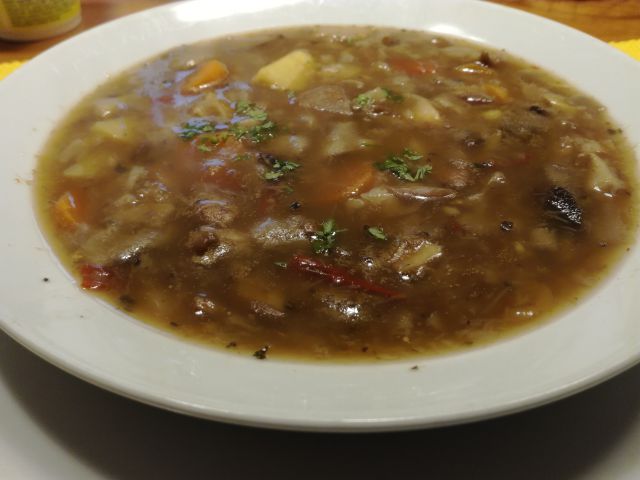 Danes: goveji golaž, polžki in motovilec, še prej pa malo goveje juhe z rezanci.