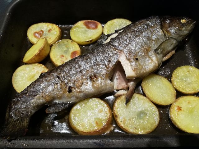 Pri nama danes postrv in krompir iz pečice, rukola v solati