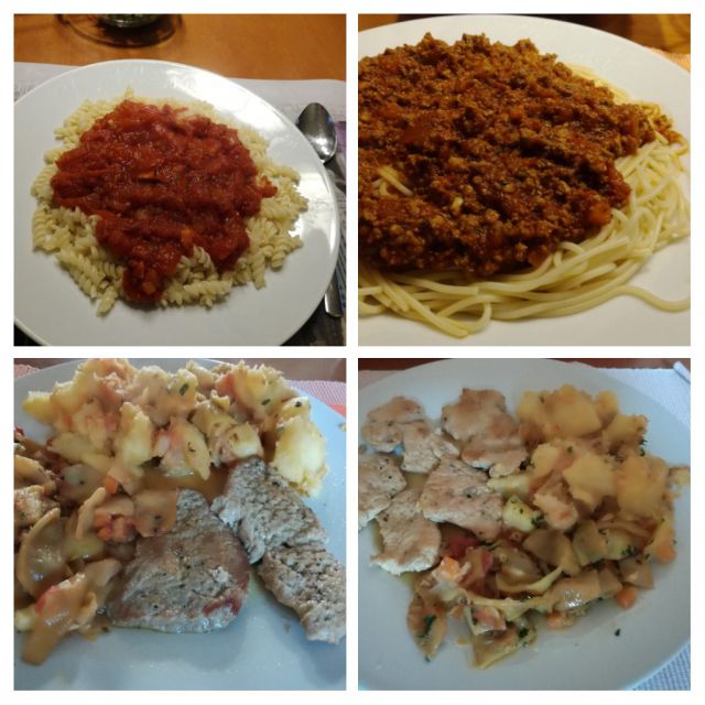 Predvčerajšnjim testenine z mesno in paradižnikovo omako, včeraj stročji fižol s paradižnikom, krompirjem in mesom