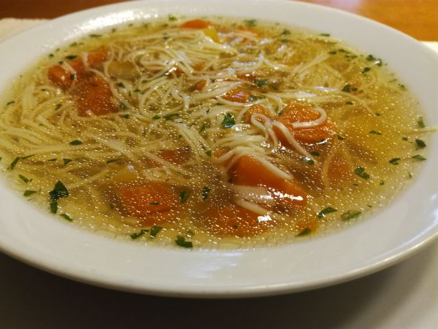 goveja juha z jetrnimi knedlčki, gobova juha ()