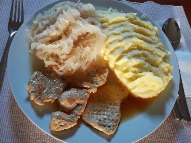 Danes za nas tri kisla repa, pire krompir, puranji medaljončki