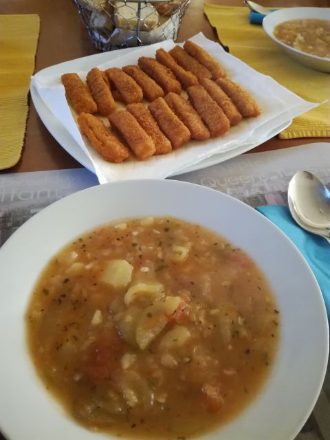 Danes sta mi hči in sin naročila njuno priljubljeno hrano- tople kumare ( enonolončnica iz kumar, krompirja in paradižnika), zraven ribje palčke in koruzni kruh. Za moža bo namesto palčk hrenovka.