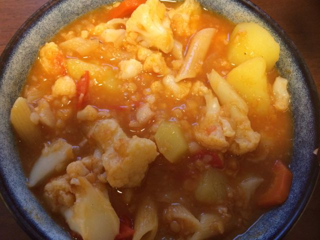 juha iz krompirja, korencka, cvetace, rdece lecd in paradiznika s testeninami