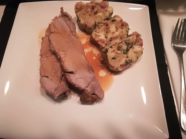 danes smo imeli večerjo pri tašči in tastu, svinjska pečenka, kruhova štruca, za ostale še tenstan krompir in sirovi štruklji, mešana solata, piškoti