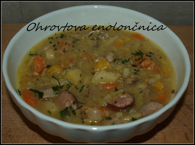Pri nas danes pasulj, klobasa, pekoči feferoni, kruh in kava.