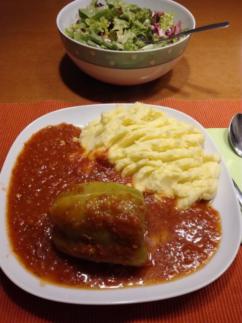 Včeraj filana paprika, pire krompir, zelena solata, radič