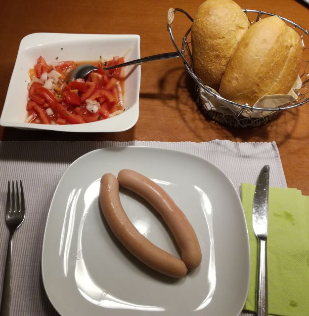 Za enega na posebno željo- goveja juha z rezanci, hrenovka, paradižnikova solata, žemlji