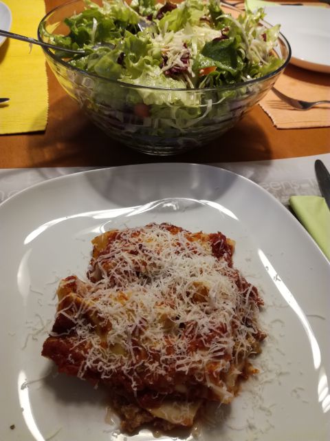 Včeraj ostanki zdrobovih cmokov v goveji juhi, kaneloni iz domačega testa polnjeni z mesom v paradižnikovi omaki, mešana solata