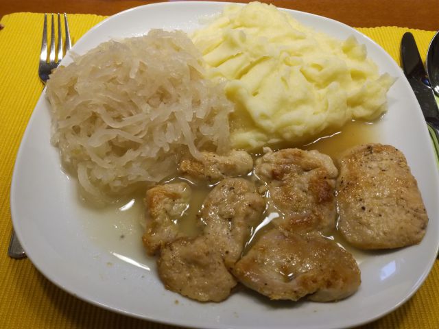Danes kisla repa, pire krompi, popečeni fileji piščanca in svinjine.