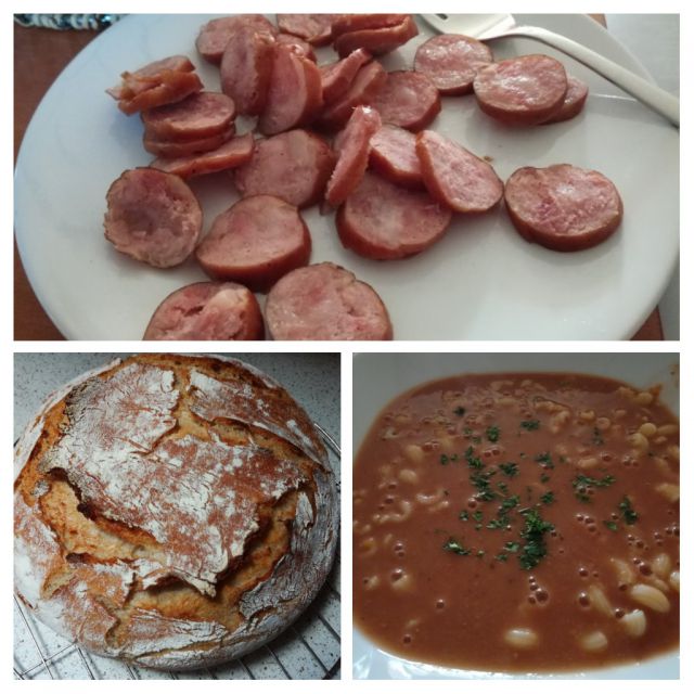 Fižolova juha, domač kruh, kranjska klobasa, sladica od včeraj