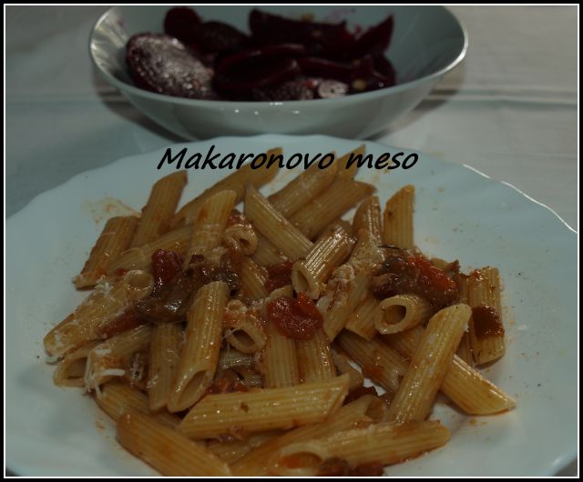Goveja juhica (iz zaloge); makaronovo meso, rdeča pesa