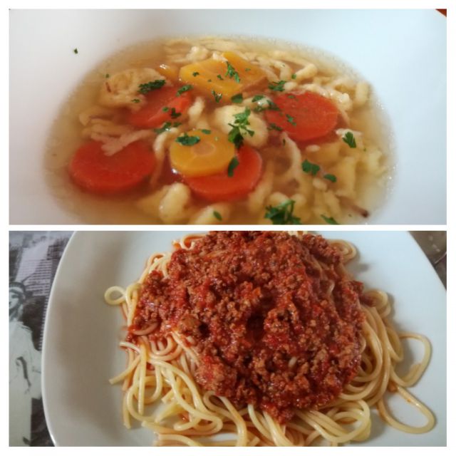 Danes goveja juha z vlivanci, mesna omaka s špageti, mešana solata