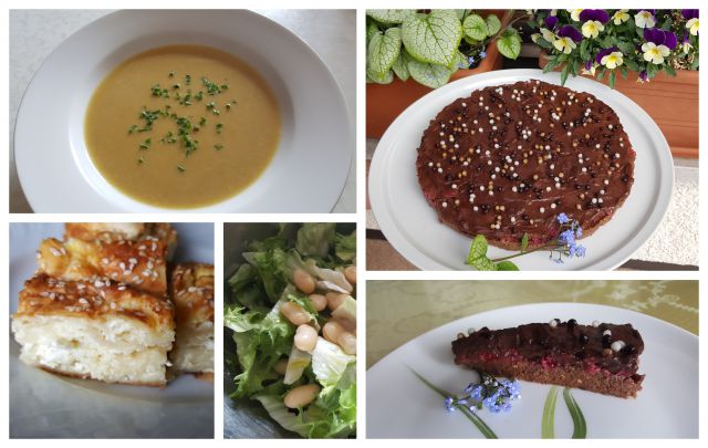 Danes pri nas: zelenjavna juha, obrnjena pita, dunajski, endivija z domačega vrta in presna torta.