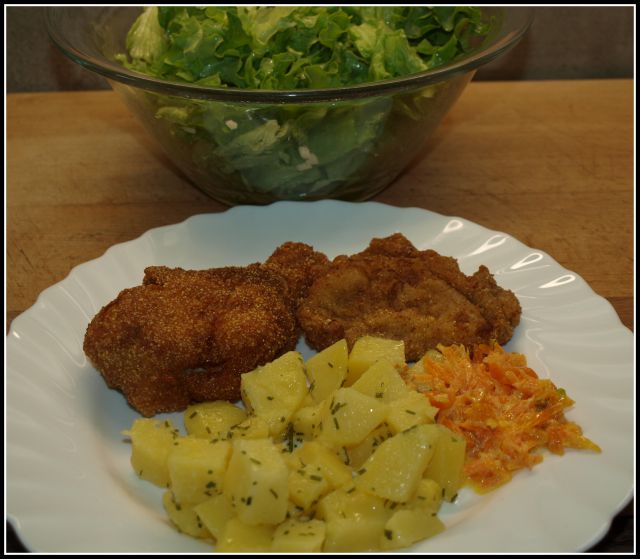Danes puranji zrezki v gorgonzolini omaki, njoki in mešana solata. Jutri bomo imeli pa sardelice in krompirjevo solato s kumarami.
