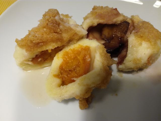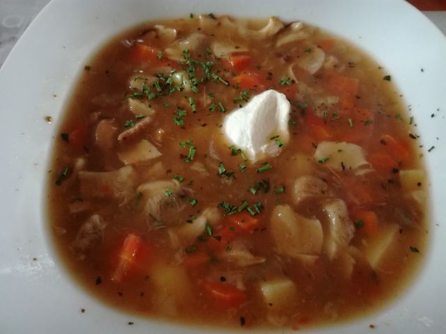 Danes gobova juha iz jurčkov, ki sem jih jeseni pridno nabirala, slivovi in marelični cmoki.