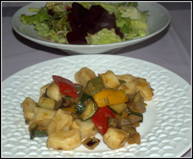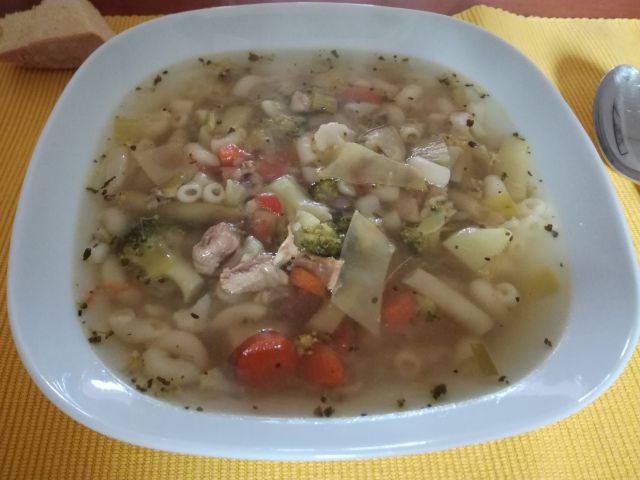 Mi bomo imeli danes piščančja popečena bedra, za prilogo pa mešano dušeno zelenjavo (stročji fižol, paprika, por, paradižnik) in zeljnato solato. Jutri bo na željo domačih prežganka, ki jo že zelo dolgo nisem skuhala in gratinirane skutine palačinke.