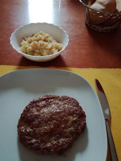 Včeraj domače ( rahlo) pikantne pleskavice, krompirjeva solata
