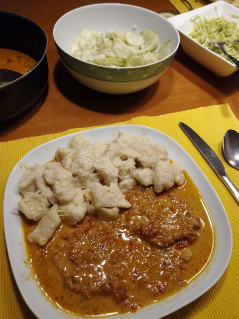 Včeraj pirini njoki s skuto, zrezki v omaki