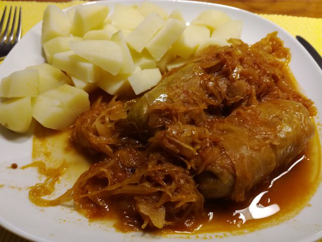 Danes sarme iz zaloge, v kosih krompir.