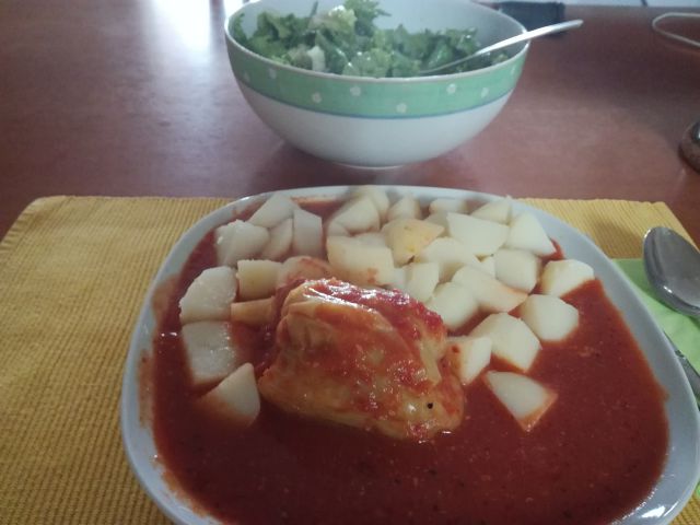 Predvčerajšnjim filana paprika, v kosih krompir, zelena solata