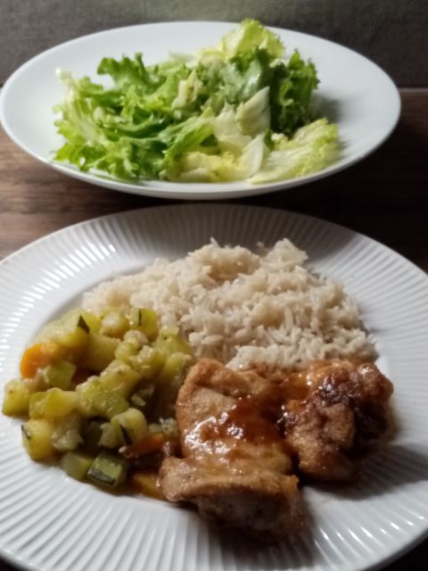 Včeraj je bilo kosilo za prijatelje v samopostrežni restavraciji Pri Balenki: za aperitiv borovničke, limončelo, zeliščni liker. Nato gobova in goveja juha, renstan krompir, pečen kifeljčar, leča z gobicami, odojek, pečen piščanec, mesna štruca z jajcem, dunajski telečji zrezki, ocvrta cvetača, popečene bučke in šampinjoni, kumarična, zelena, zeljna, paradižnikova s papriko in čebulo ter mešana solata, pečena paprika s česnom in peteršiljem, domača tatarska omaka, katere mojster je Balenko jr., vino belo in cviček, voda, jogurtova strjenka s podloženim sadjem, sadna solata, jogurtova pita, kava in najbrž sem še kaj pozabila. Pridni pomočnici pri pripravi, postrežbi in pomivanju sta bili Balenčica in kandidatka za snaho.