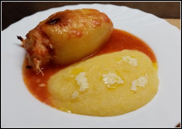 Paprika polnjena s sirom in krompirjem, pečena v pečici; bučnica