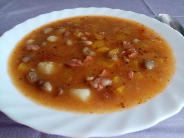 Danes filane paprike, pire krompir, zelena solata z zeljno, breskova pita z višnjami