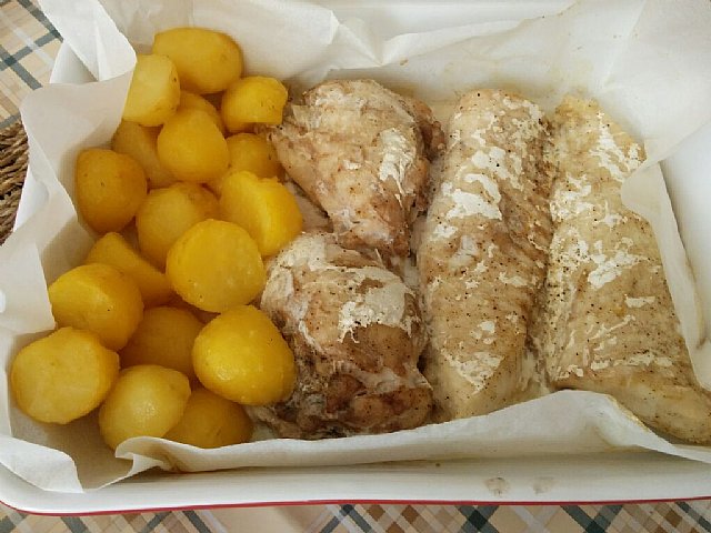 Danes v pečici pečen file ribe (smuč) in krompir, predhodno kuhan. ![]()