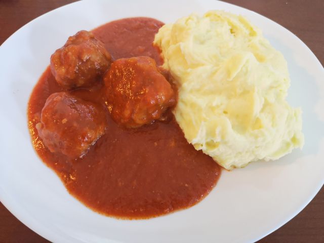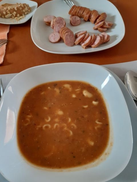 Danes fižolova juha, kranjska klobasa, kruh, marelični in slivovi cmoki.