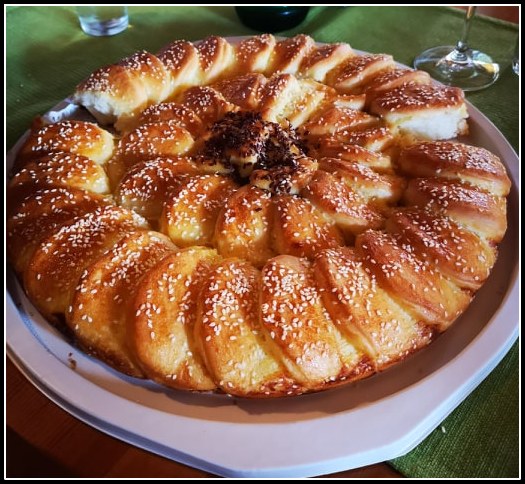 Pogača s sirom, posuta s sezamom (moja);
