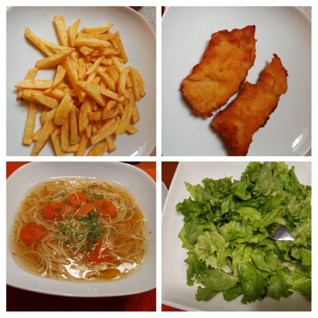 Sobota: ovcrti piscancji zrezki, prazen krompir, zelena solata s fizolom