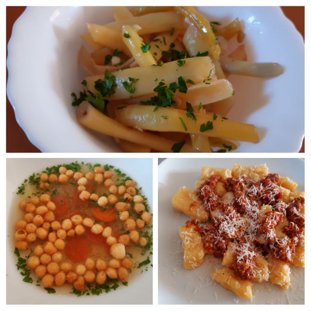 Danes goveja juha z zlatimi kroglicami, njoki iz muškatne buče s skuto, mesna omaka, stročji fižol v solati